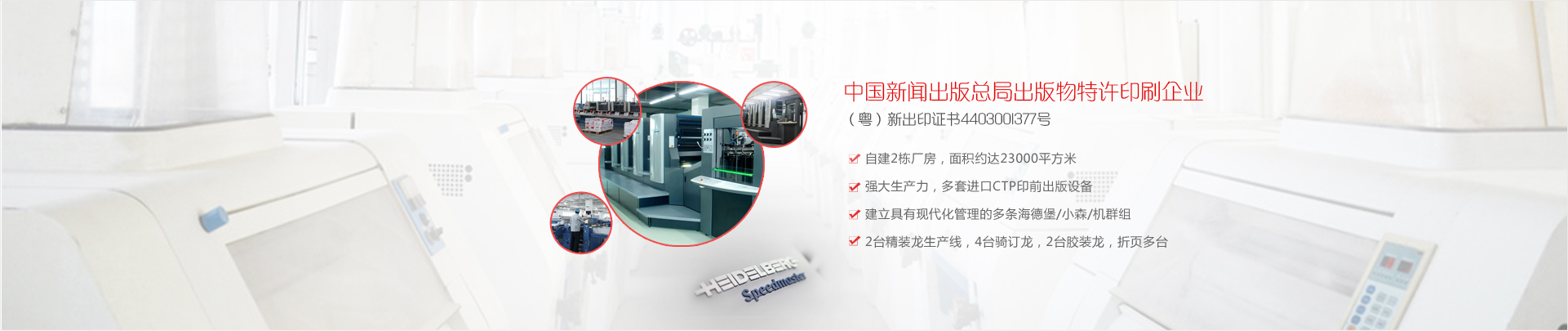 公司實力雄厚,設(shè)備先進(jìn)。 聚集了許多高等院校的尖端高級印刷專業(yè)人才,擁有國際頂尖的、全球最大的成套印刷設(shè)備— - 德國海德堡-對開四色、五色、雙色、單色、四開四色機(jī)等的主體印刷設(shè)備, 擁有高水準(zhǔn)后道加工系統(tǒng)—— 全電腦控制的斯塔爾折頁機(jī)、 STAHL 自動折頁機(jī)、 全自動鎖線機(jī)、 全自動騎馬訂聯(lián)動機(jī)、馬天尼膠裝龍、 程控切紙機(jī)、環(huán)保型過膠機(jī)、啤機(jī)等 精良裝備,整套印前印后設(shè)備。